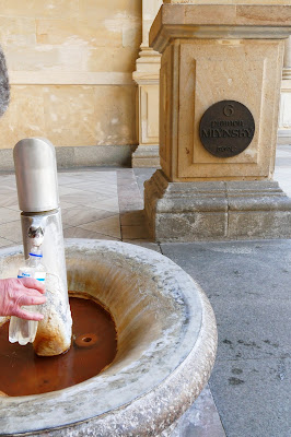 Pod każdą kolumnadą skryte są źródła wody mineralnej o temperaturze wody od 14 stopni do 73 stopni,nam w gorący dzień najlepiej smakowała woda ze źródła o temperaturze 14 stopni.